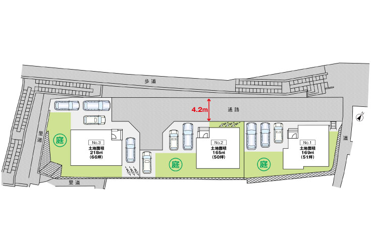 敷地広々50〜66坪、お庭付きのお家。